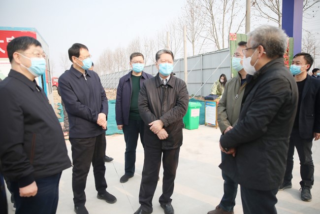 河南省发改委副主任黄亚军(中),带领省发改委调研组莅临公司调研省重点项目开复工情况。焦作市委常委、常务副市长李民生(左二),市发改委主任唐毅,温县县委书记毛文明,温县县委常委、常务副县长陈宁等陪同调研。